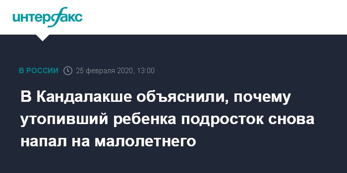 В Кандалакше объяснили, почему утопивший ребенка подросток снова напал на малолетнего