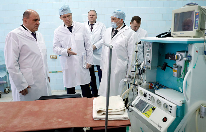 Его сопровождали вице-премьер Марат Хуснуллин, министр здравоохранения Михаил Мурашко и глава Минфина Антон Силуанов, которому ранее было поручено курировать развитие этого региона. Во время осмотра корпуса, где оборудован операционный блок, глава Минздрава рассказал премьеру, что капитальный ремонт в этих помещениях не проводился около 40 лет. Мурашко также указал на проблему устаревшего оборудования в этой больнице.