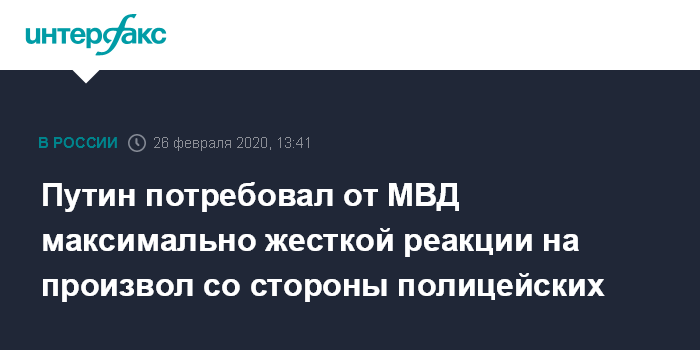 Путин потребовал от МВД максимально жесткой реакции на произвол со стороны полицейских