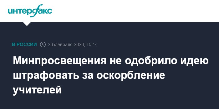 Москва. 26 февраля. INTERFAX.RU - В Минпросвещения не поддеривают идею ввести штрафы за оскорбления учителей и предупреждают, что одними запретами и штрафами нельзя создать комфортную психологическую среду в школах. Так в ведомстве прокомментировали предложение Общероссийского союза образования.