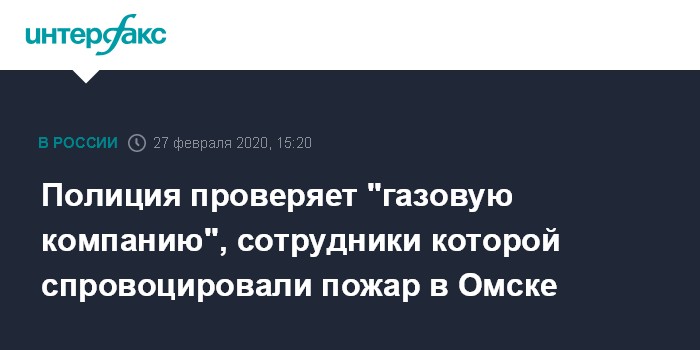 Москва. 27 февраля. INTERFAX.RU - В Омске полиция проверяет ООО "Городская газовая безопасность", сотрудники которой спровоцировали пожар в жилом многоэтажном доме на улице Масленникова. В частности, будет проверена правомерность ее работы, сообщили в областном управлении МВД.