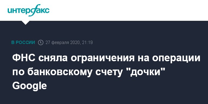ФНС сняла ограничения на операции по банковскому счету "дочки" Google