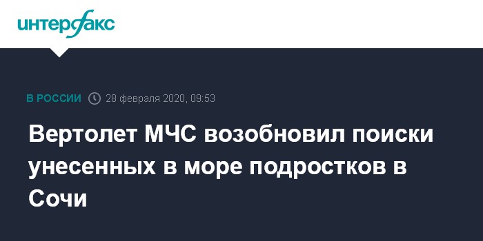Вертолет МЧС возобновил поиски унесенных в море подростков в Сочи