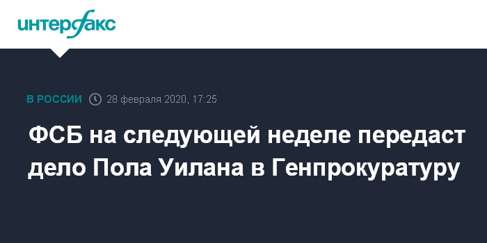 ФСБ на следующей неделе передаст дело Пола Уилана в Генпрокуратуру