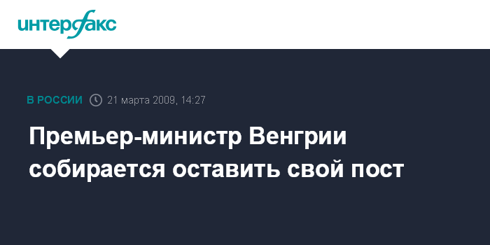 Москва. 21 марта. INTERFAX.RU - Премьер-министр Венгрии Ференц Дюрчань заявил, что уходит в отставку, поскольку не получает поддержки своего правительства в период финансового кризиса, сообщает в субботу британская телерадиокорпорация Би-Би-Си.