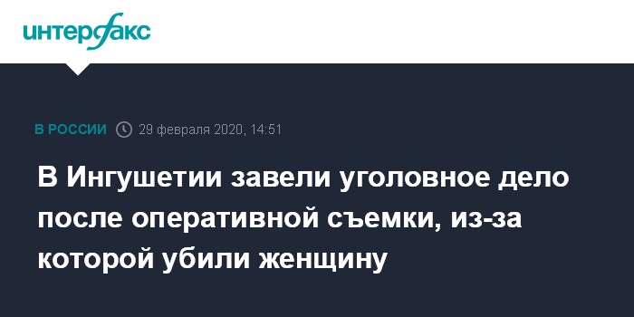 Москва. 29 февраля. INTERFAX.RU - Следственные органы Ингушетии расследуют уголовные дела по факту убийства молодой женщины и появления в интернете оперативной съемки, из-за которой совершено данное преступление.