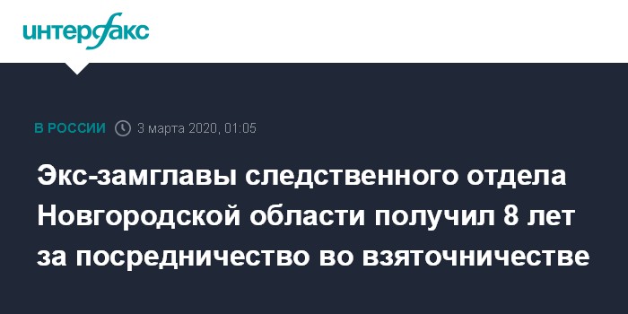 Экс-замглавы следственного отдела Новгородской области получил 8 лет за посредничество во взяточничестве