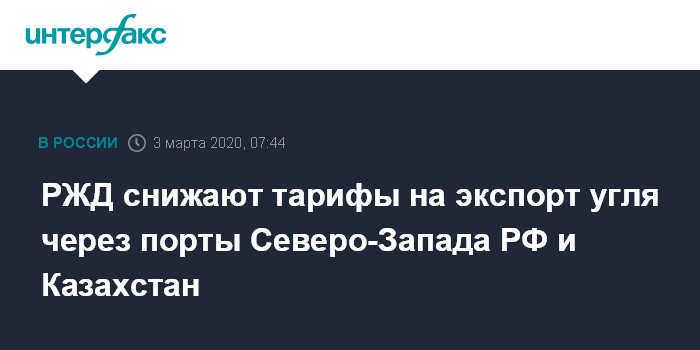 "В рамках взаимодействия РЖД с угольными компаниями и губернатором Кузбасса Сергеем Цивилевым удалось достичь договоренностей о формировании конкурентоспособных ценовых условий перевозок угля на фоне негативной рыночной конъюнктуры. "Российскими железными дорогами" приняты решения о максимальном снижении тарифов на экспортные перевозки углей энергетических марок до конца 2020 г.", - сообщил журналистам представитель монополии.