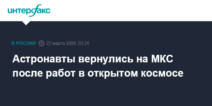 Москва. 22 марта. ИНТЕРФАКС-АВН - Астронавты Стивен Свонсон и Джозеф Акаба вернулись на борт Международной космической станции (МКС), завершив работы в открытом космосе.