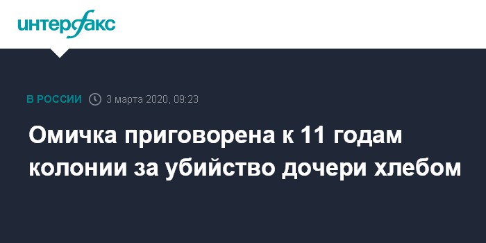 Омичка приговорена к 11 годам колонии за убийство дочери хлебом