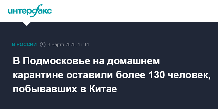 Как заявила чиновница во вторник на заседании областного правительства, в Подмосковье ведется наблюдение за всеми россиянами, прибывающими из КНР и не имеющими признаков ОРВИ. Все они помещаются на домашний карантин, подчеркнула Стригункова.