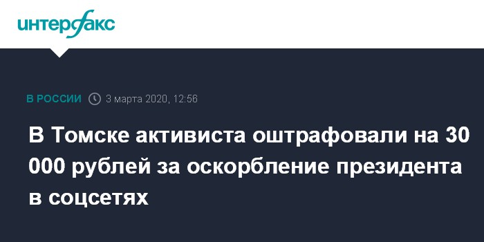 В Томске активиста оштрафовали на 30 000 рублей за оскорбление президента в соцсетях