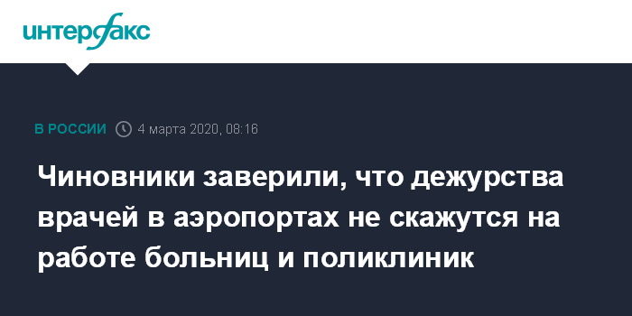 Чиновники заверили, что дежурства врачей в аэропортах не скажутся на работе больниц и поликлиник