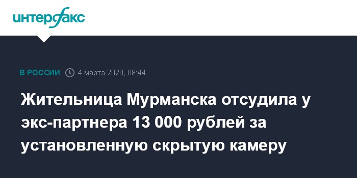 Москва. 4 марта. INTERFAX.RU - Ленинский районный суд Мурманска присудил женщине 13 000 рублей компенсации морального вреда с бывшего партнера, который в ее отсутствие установил в ее квартире скрытую камеру, замаскировал под предметы домашнего обихода и просматривал записи с мобильного телефона. Об этом сообщила пресс-служба суда.