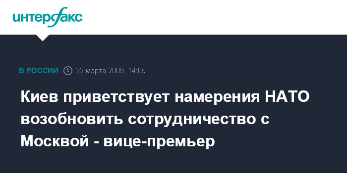 Киев. 22 марта. INTERFAX.RU - Вице-премьер Украины по делам европейской и международной интеграции Григорий Немыря заявляет, что украинская сторона приветствует намерения НАТО возобновить полномасштабное сотрудничество с Россией.
