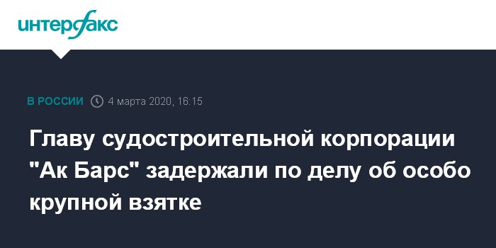 Главу судостроительной корпорации "Ак Барс" задержали по делу об особо крупной взятке