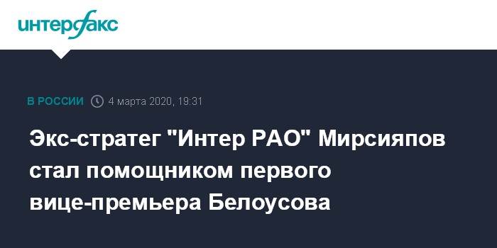 Экс-стратег "Интер РАО" Мирсияпов стал помощником первого вице-премьера Белоусова
