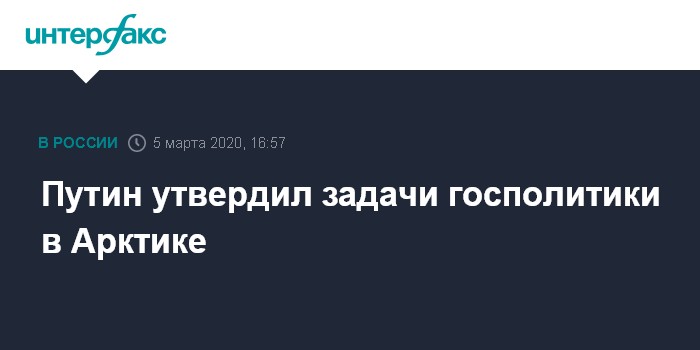 Москва. 5 марта. INTERFAX.RU - Президент Владимир Путин своим указом утвердил Основы государственной политики России в Арктике на период до 2035 года. Указ опубликован на официальном интернет-портале правовой информации.