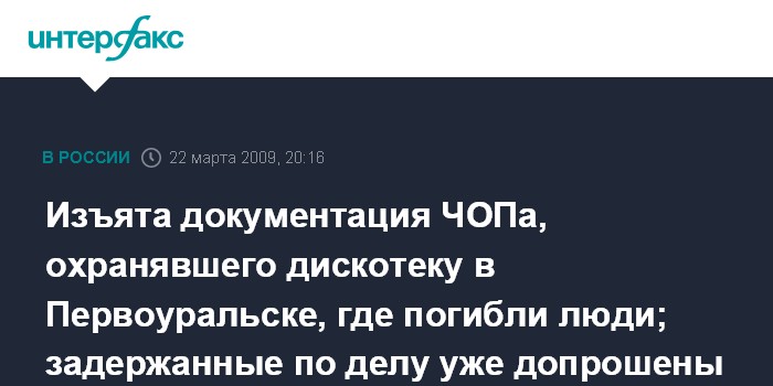 Изъята документация ЧОПа, охранявшего дискотеку в Первоуральске, где погибли люди; задержанные по делу уже допрошены