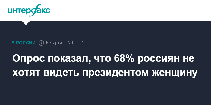 Опрос показал, что 68% россиян не хотят видеть президентом женщину