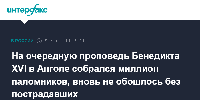 На очередную проповедь Бенедикта XVI в Анголе собрался миллион паломников, вновь не обошлось без пострадавших