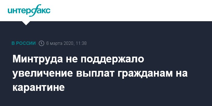Минтруда не поддержало увеличение выплат гражданам на карантине