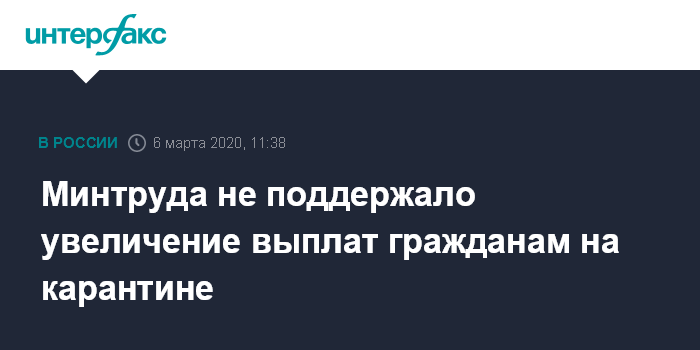 Москва. 6 марта. INTERFAX.RU - Минтруда не поддерживает предложение депутата Госдумы Андрея Ветлужских увеличить выплаты по больничным людям, помещенным под карантин по коронавирусу.