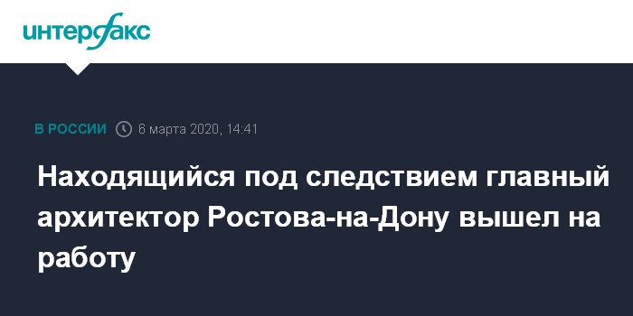 Находящийся под следствием главный архитектор Ростова-на-Дону вышел на работу