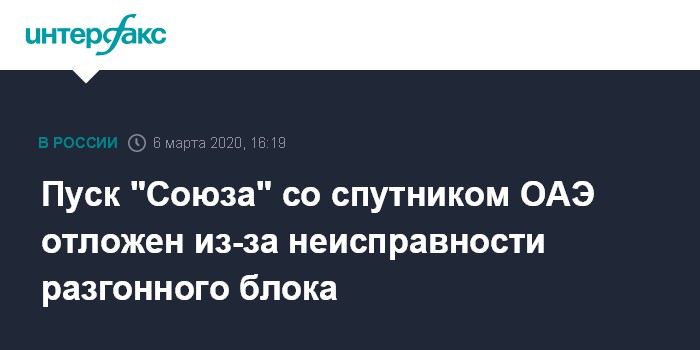 Пуск "Союза" со спутником ОАЭ отложен из-за неисправности разгонного блока