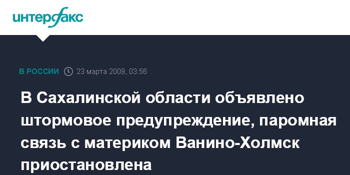 Южно-Сахалинск. 23 марта. ИНТЕРФАКС - ДАЛЬНИЙ ВОСТОК - В Сахалинской области объявлено штормовое предупреждение в связи с подходом двух циклонов, сообщили агентству "Интерфакс - Дальний Восток" в пресс-службе ГУ МЧС по Сахалинской области.