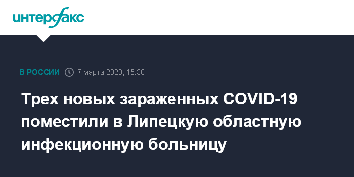 Число официально зарегистрированных случаев коронавируса в России выросло до 14Читать подробнееПациенты госпитализированы в ГУЗ "Липецкая областная клиническая инфекционная больница" с соблюдением всех мер инфекционной безопасности в отдельные боксы. Все они получают необходимое лечение в соответствии с действующим протоколом Минздрава России.