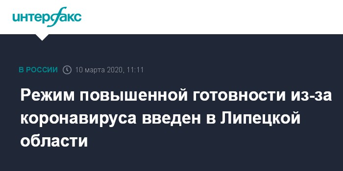 Москва. 10 марта. INTERFAX.RU - Глава администрации Липецкой области Игорь Артамонов ввел на территории региона с 10 марта режим повышенной готовности из-за первых случаев выявления коронавируса у местных жителей, сообщила во вторник пресс-служба обладминистрации.