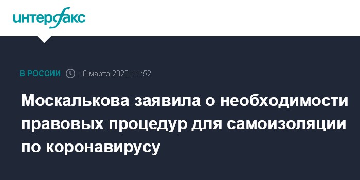Москалькова заявила о необходимости правовых процедур для самоизоляции по коронавирусу