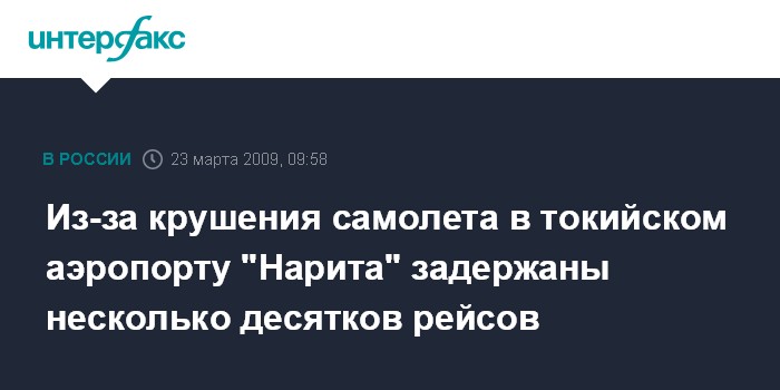 Москва. 23 марта. INTERFAX.RU - Большое количество рейсов отменено в токийском международном аэропорту "Нарита" из-за того, что разбившийся там самолет американской компании "Федекс" повредил взлетно-посадочную полосу.