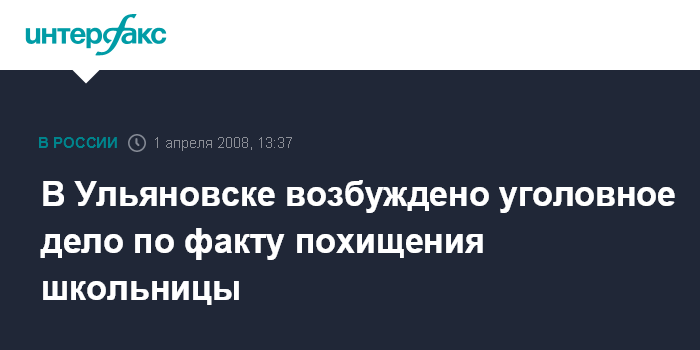 В Ульяновске возбуждено уголовное дело по факту похищения школьницы