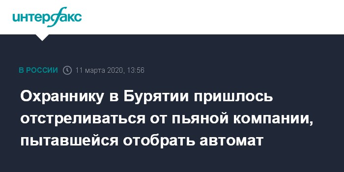 Охраннику в Бурятии пришлось отстреливаться от пьяной компании, пытавшейся отобрать автомат