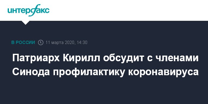 Москва. 11 марта. INTERFAX.RU - Патриарх Московский и всея Руси Кирилл обсудит с членами Священного Синода в среду меры по профилактике коронавируса. Он объявил об этом в начале заседания.