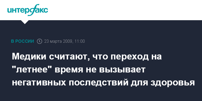 Москва. 23 марта. INTERFAX.RU - Медики не видят серьезных негативных последствий для организма человека от перехода на "летнее" время.