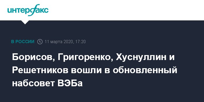 Борисов, Григоренко, Хуснуллин и Решетников вошли в обновленный набсовет ВЭБа