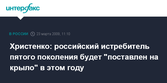 "В этом же году мы "поставим на крыло" истребитель пятого поколения, как бы ни было трудно", - сказал В.Христенко в интервью, которое в понедельник опубликовано в журнале "Итоги". По его словам, если этого не будет сделано, последствия могут оказаться весьма тяжелыми.
