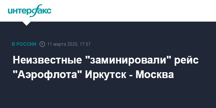 Москва. 11 марта. INTERFAX.RU - Boeing 737 "Аэрофлота", вылетевший из Иркутска в Москву, получил сообщение о заложенной бомбе. Принято решение лететь до пункта назначения - "Шереметьево", сообщил информированный источник "Интерфакса".
