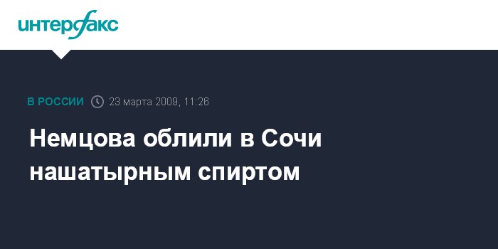 Москва. 23 марта. INTERFAX.RU - Одного из претендентов на участие в выборах мэра Сочи Бориса Немцова в понедельник облили водой с нашатырным спиртом.
