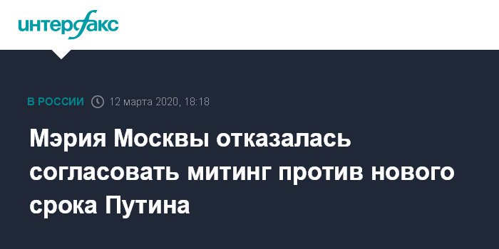 Мэрия Москвы отказалась согласовать митинг против нового срока Путина
