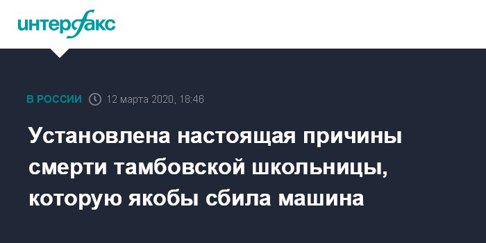 Установлена настоящая причины смерти тамбовской школьницы, которую якобы сбила машина