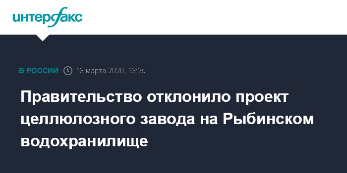 Москва. 13 марта. INTERFAX.RU - Правительство РФ не считает целесообразным строительство целлюлозно-бумажного комбината на берегу Рыбинского водохранилища, заявил премьер-министр РФ Михаил Мишустин.