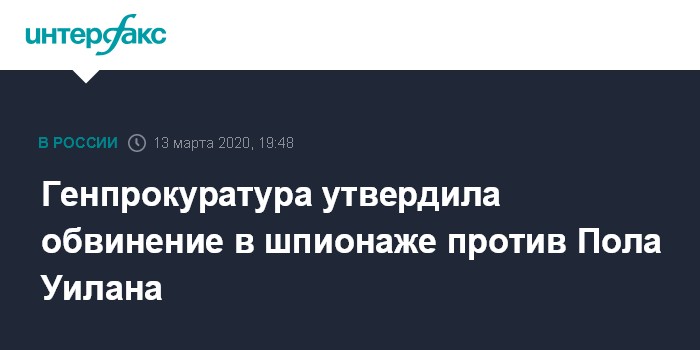 Генпрокуратура утвердила обвинение в шпионаже против Пола Уилана