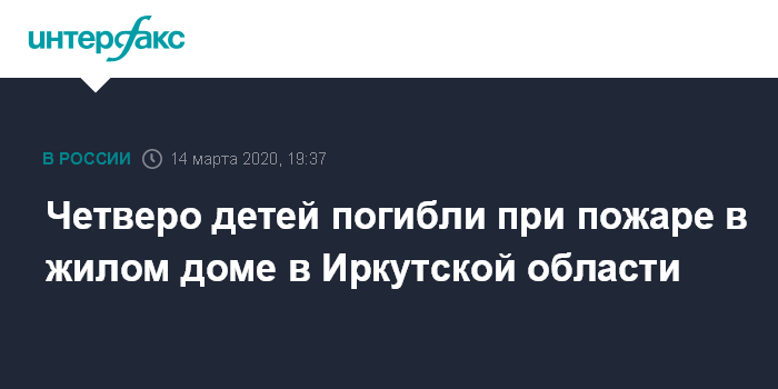 Четверо детей погибли при пожаре в жилом доме в Иркутской области
