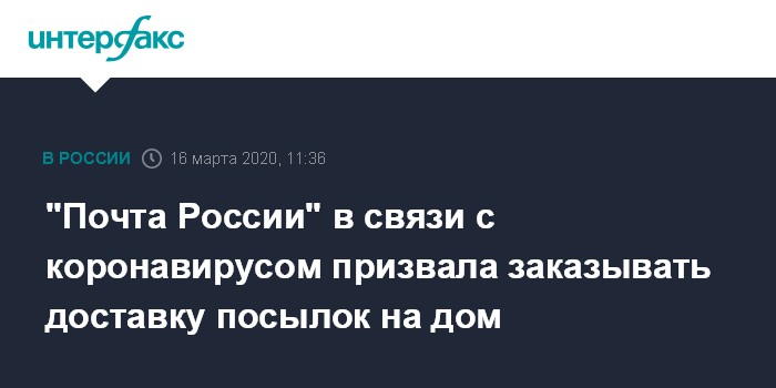 Москва. 16 марта. INTERFAX.RU - "Почта России" призвала клиентов чаще использовать дистанционные каналы обслуживания, оформлять посылки онлайн и заказывать доставку курьером.