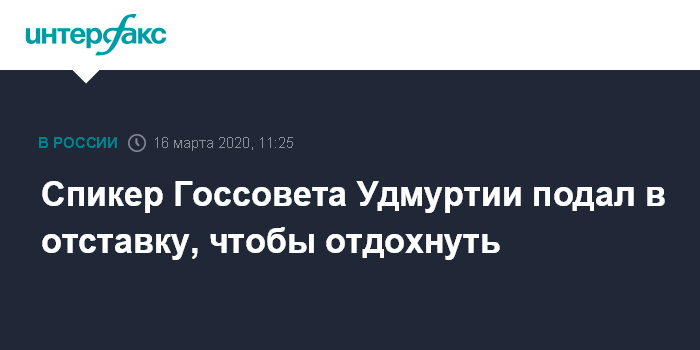 Спикер Госсовета Удмуртии подал в отставку, чтобы отдохнуть