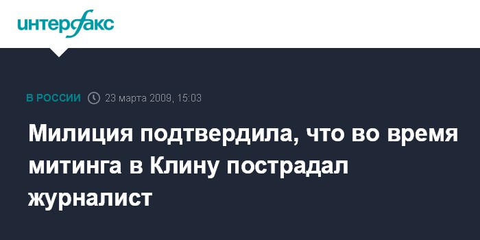 Москва. 23 марта. INTERFAX.RU - В управлении информации и общественных связей ГУВД Московской области подтвердили информацию, что в субботу во время митинга в Клину пострадал журналист.